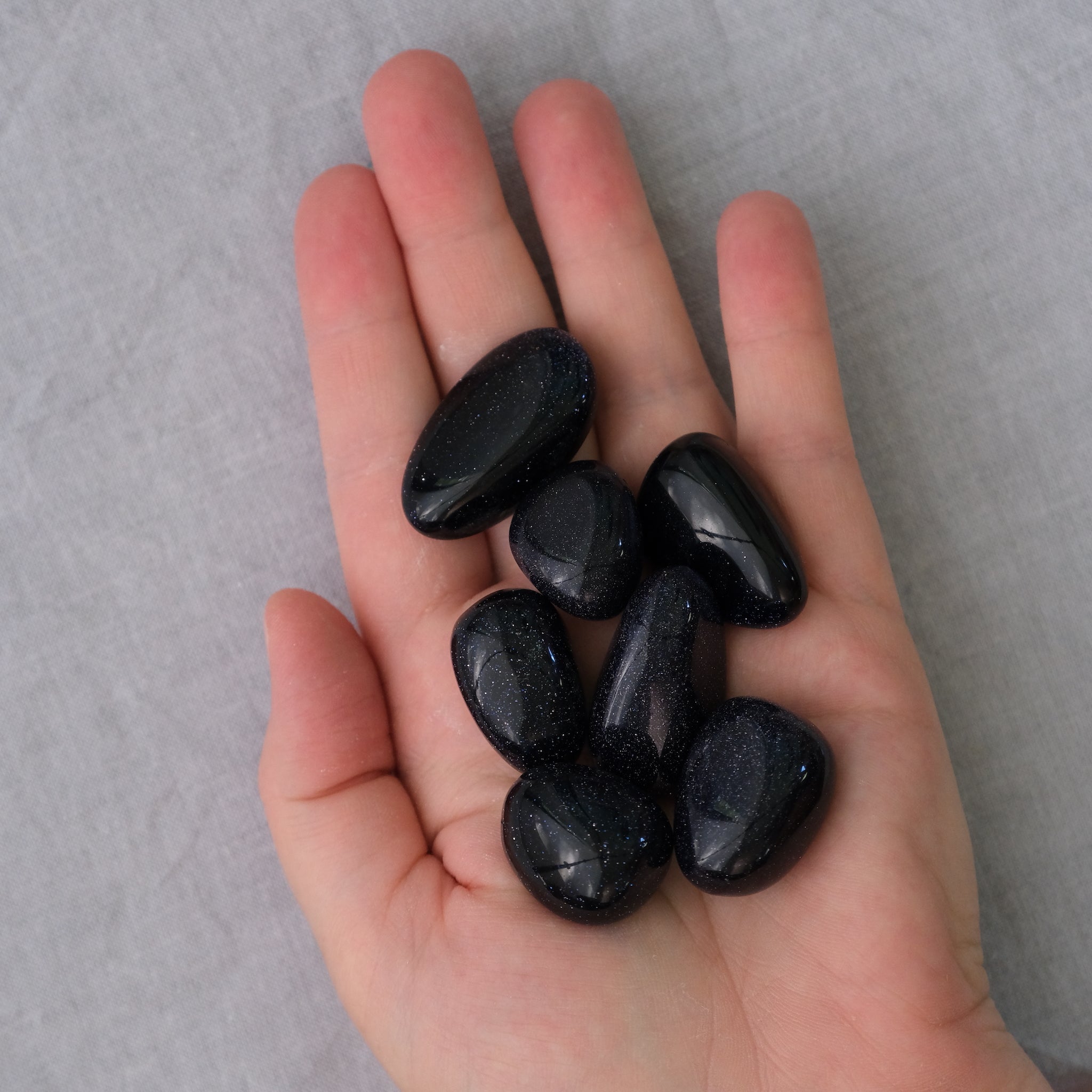 Blue Goldstone Tumbled Stones are polished stones that have a smooth surface with the rough edges tumbled out. This shape is perfect to carry in your pocket for those times when you need an energy boost or to use in meditation or Reiki.