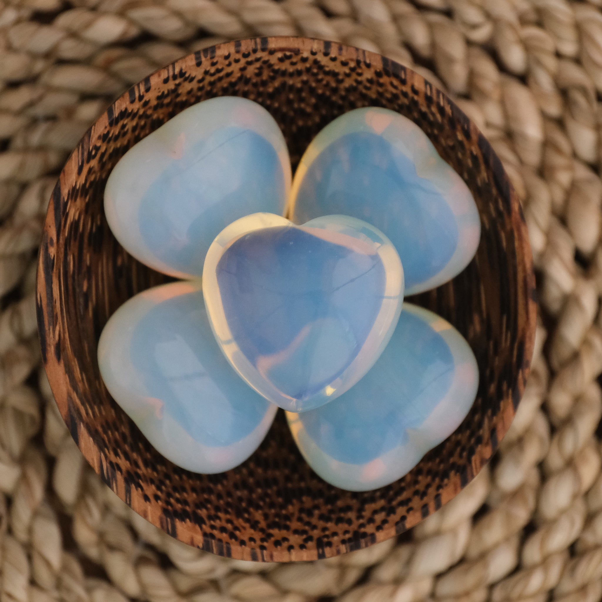 Create positive and loving energy with our beautiful Opalite Hearts. Our carved hearts symbolise love and come in a vast range of sizes. Put your Heart in your pocket and feel it whenever you need to be reminded that you are loved. These Hearts will bring you lots of happiness.