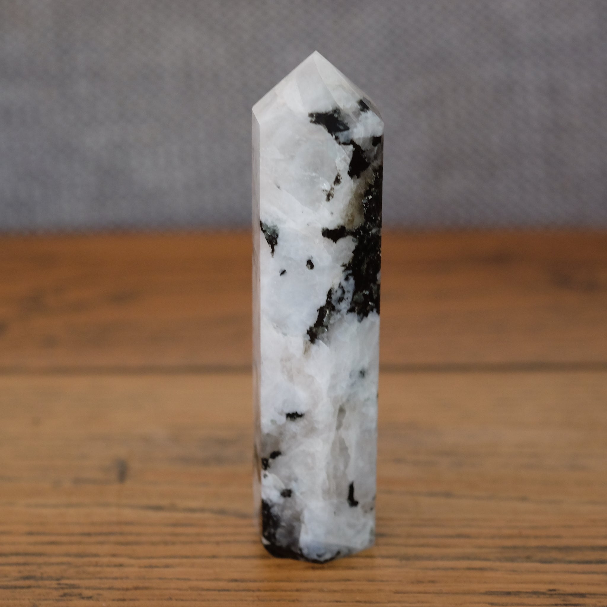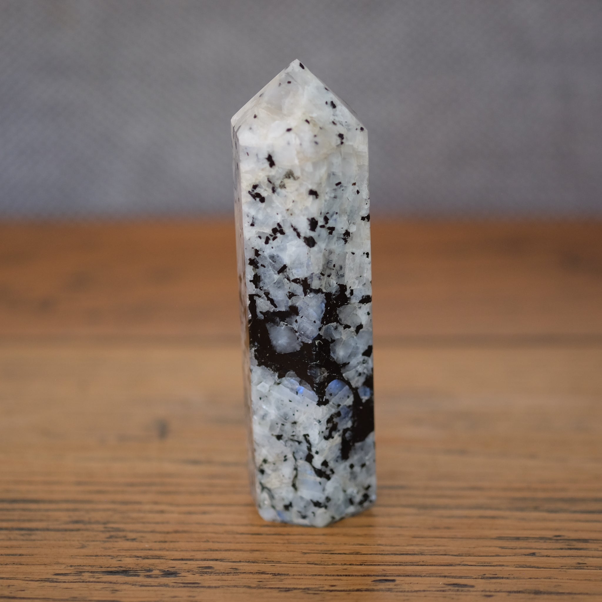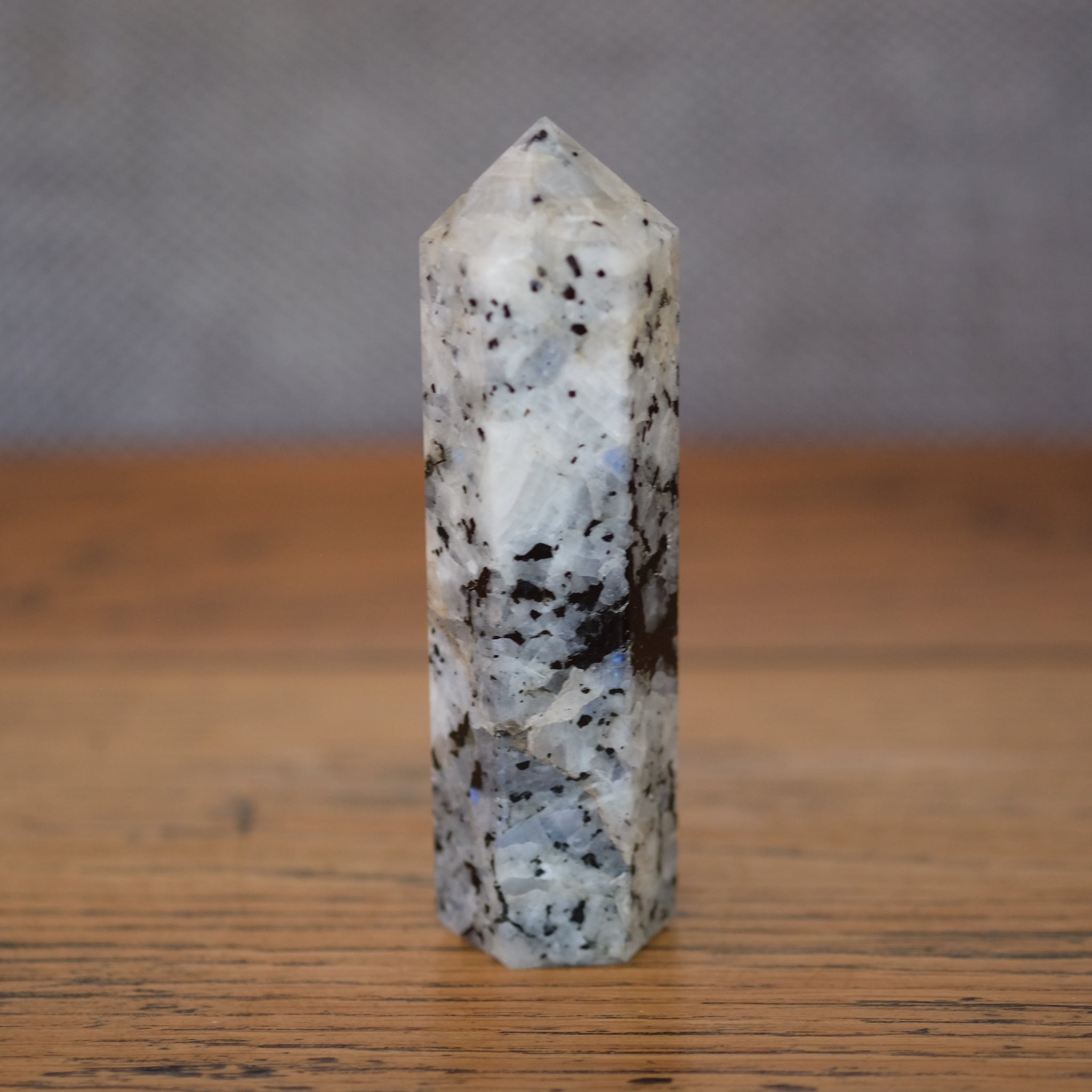 Rainbow Moonstone Crystal Towers also known as obelisks or generators are a standing crystal that draws and directs all the energy to a point. Towers can be used to flow energy within the body or used as part of your crystal grid. They can also be great centre piece on display within your home or office.