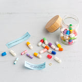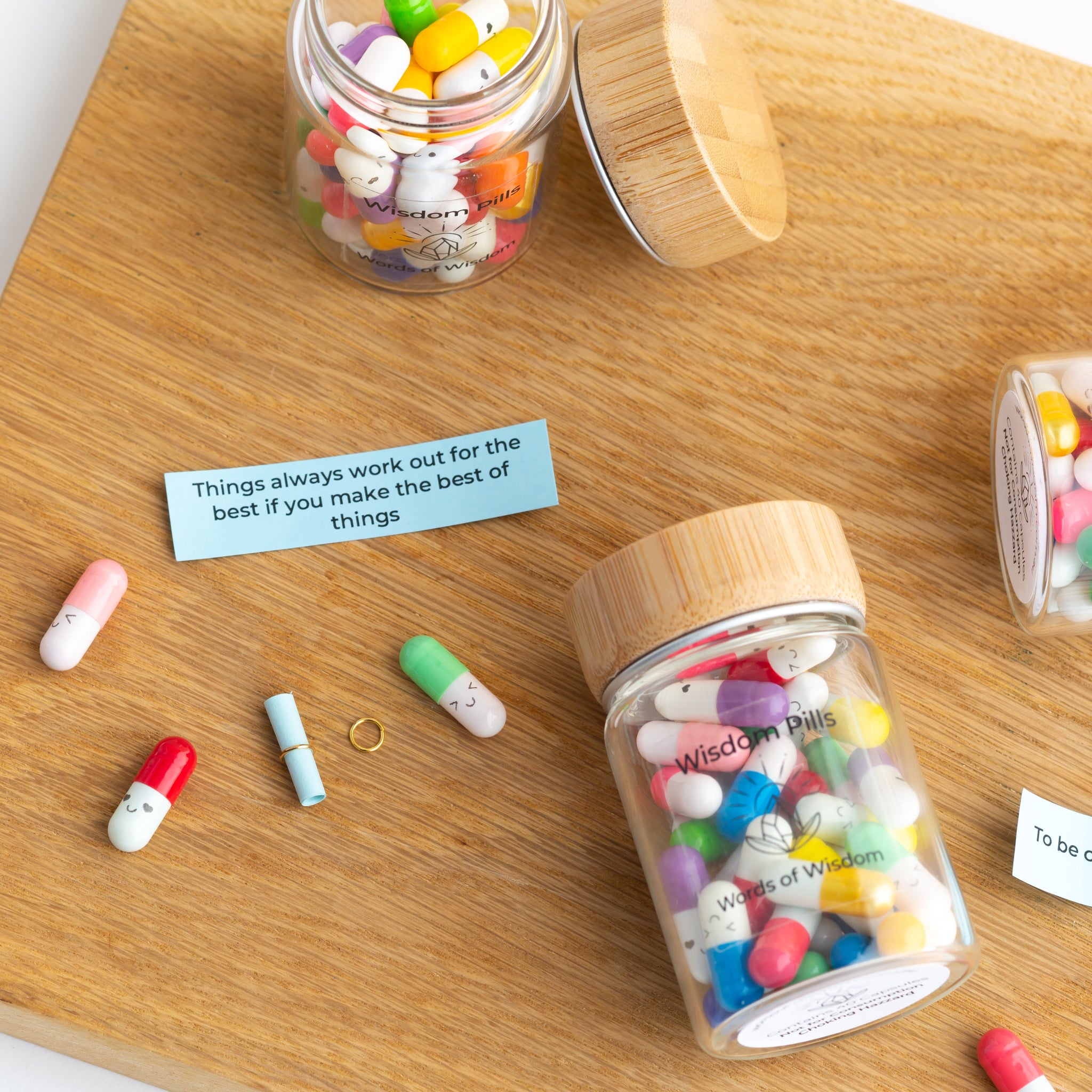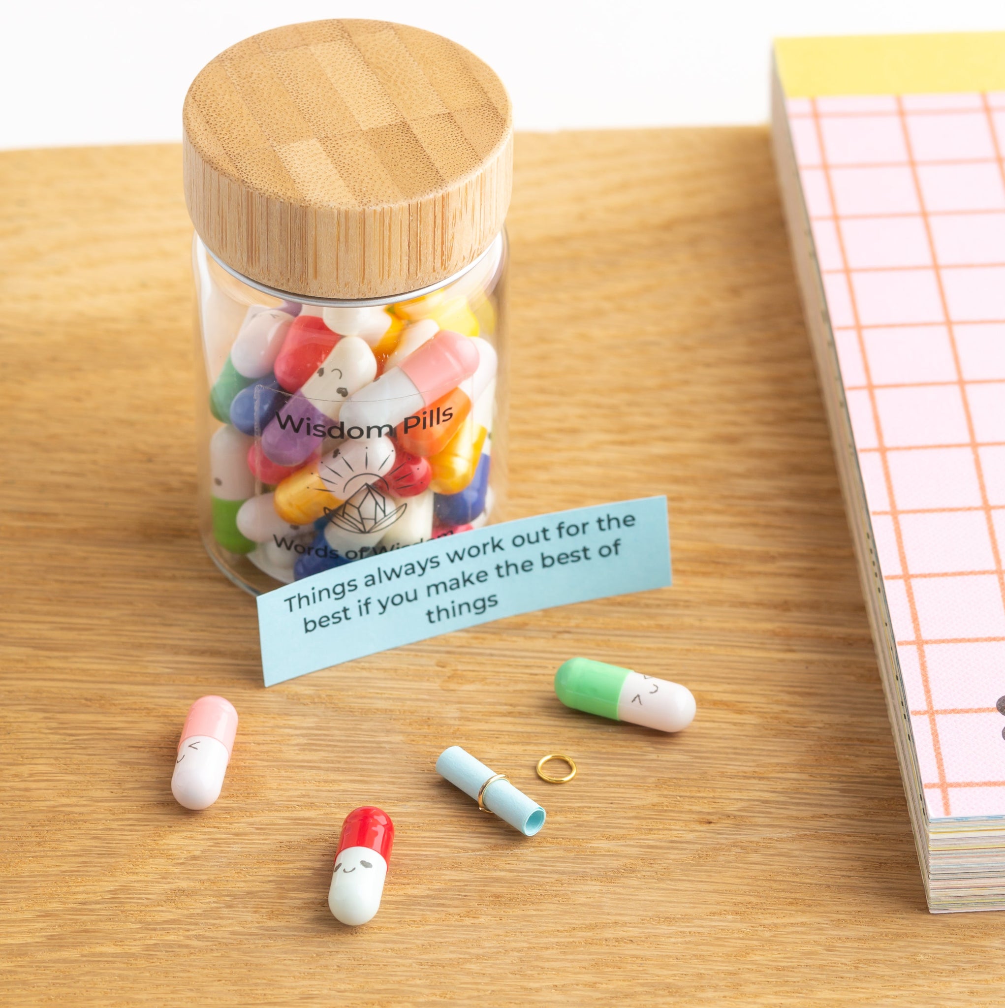 Stress Wisdom Pills give you a little inspiration each day. The Wisdom Pills can be opened up to revel a secret scroll that you can unravel and read our inspiring quote to bring you wisdom, inspiration and light each day or whenever needed. This is a great little gift for a loved one to give them something to look forward too if you are apart. These are a little jar of happiness.