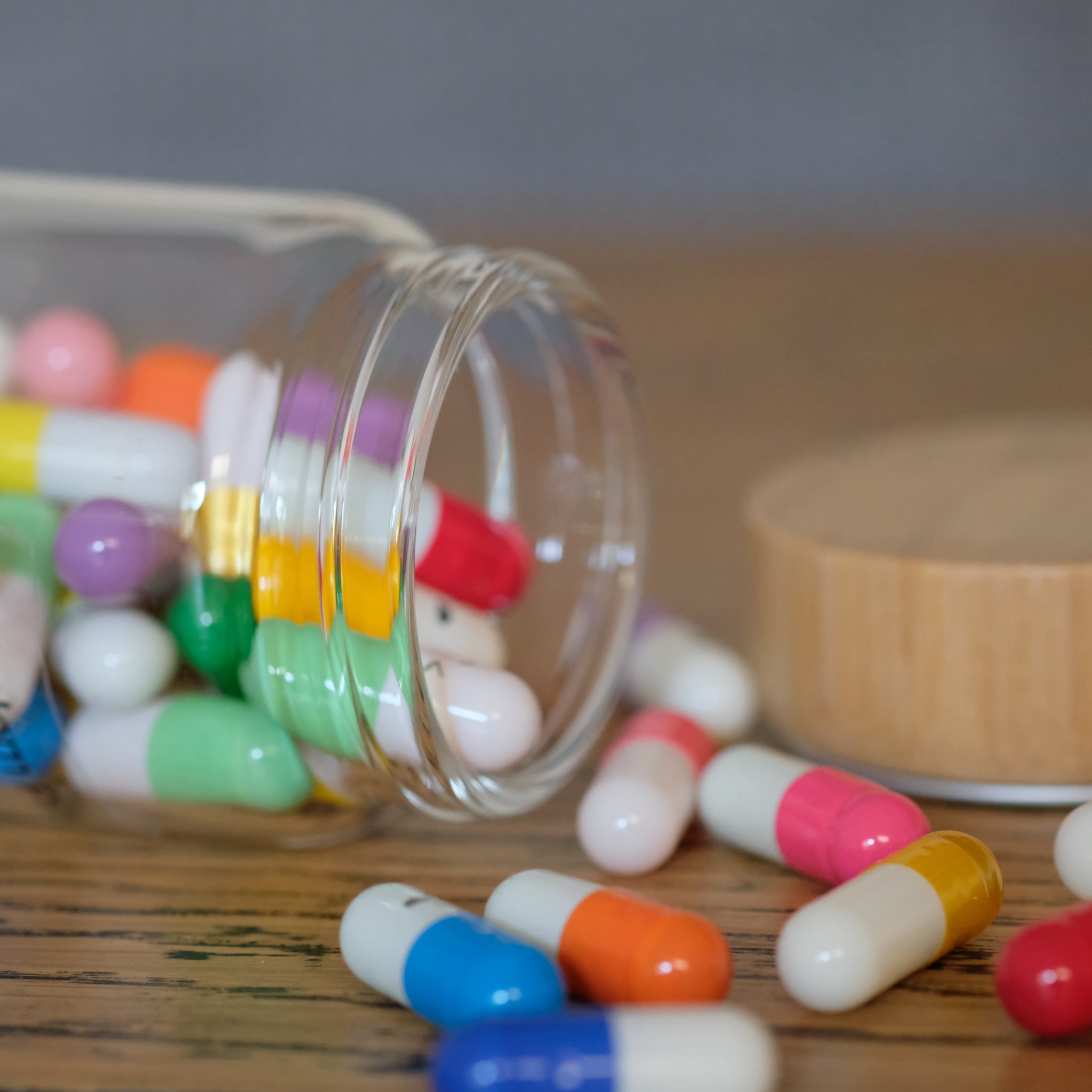 Pills come in a glass jar with a bamboo screw lid. The type of Wisdom Pill is shown with a sticker on the back that can be easily removed.
