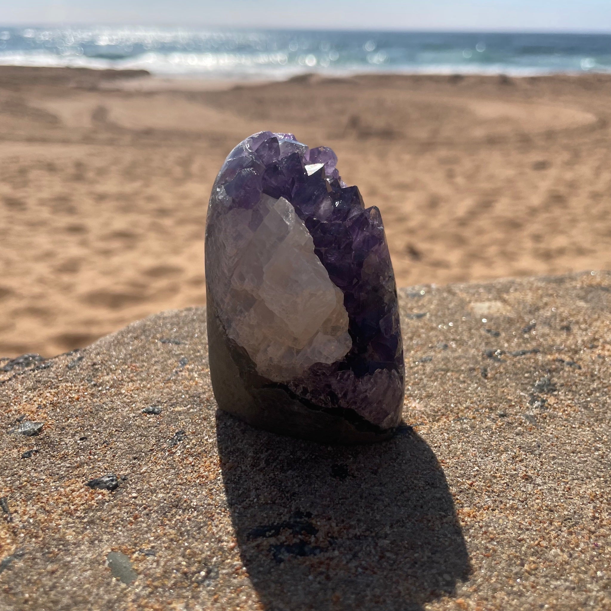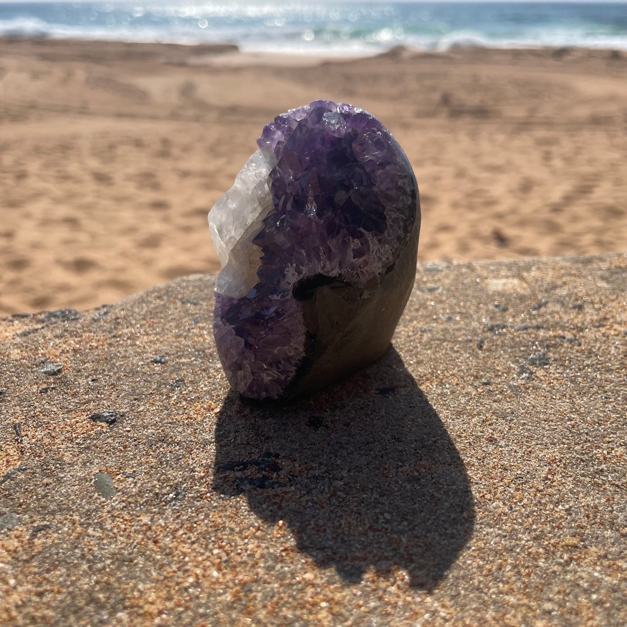 Amethyst Geodes are crystals which emerge from a base of rock that can be rounded like a cave. Geodes have a durable outer that allows the geode to survive intact when the surrounding bedrock weathers away. Placing other crystals on a Geode can help to clear their energy. Geodes are great placed near an entrance to your home or office to clear and energise the flow of energy.