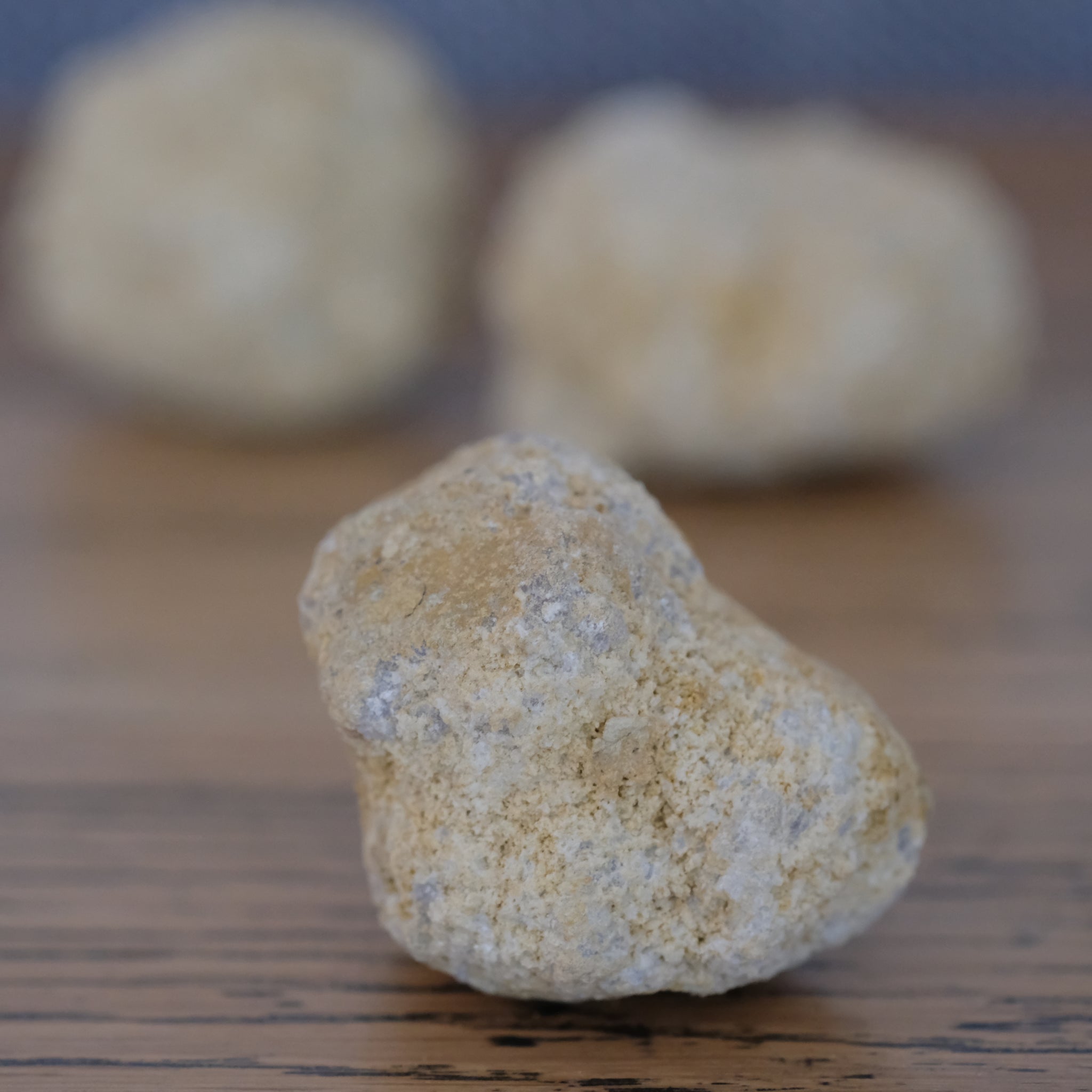 These Geodes haven't been cracked open as yet and can be a challenge to open. You will need a hammer and a chisel to get them open. As they are natural untouched stones, we are unsure of what lies inside.