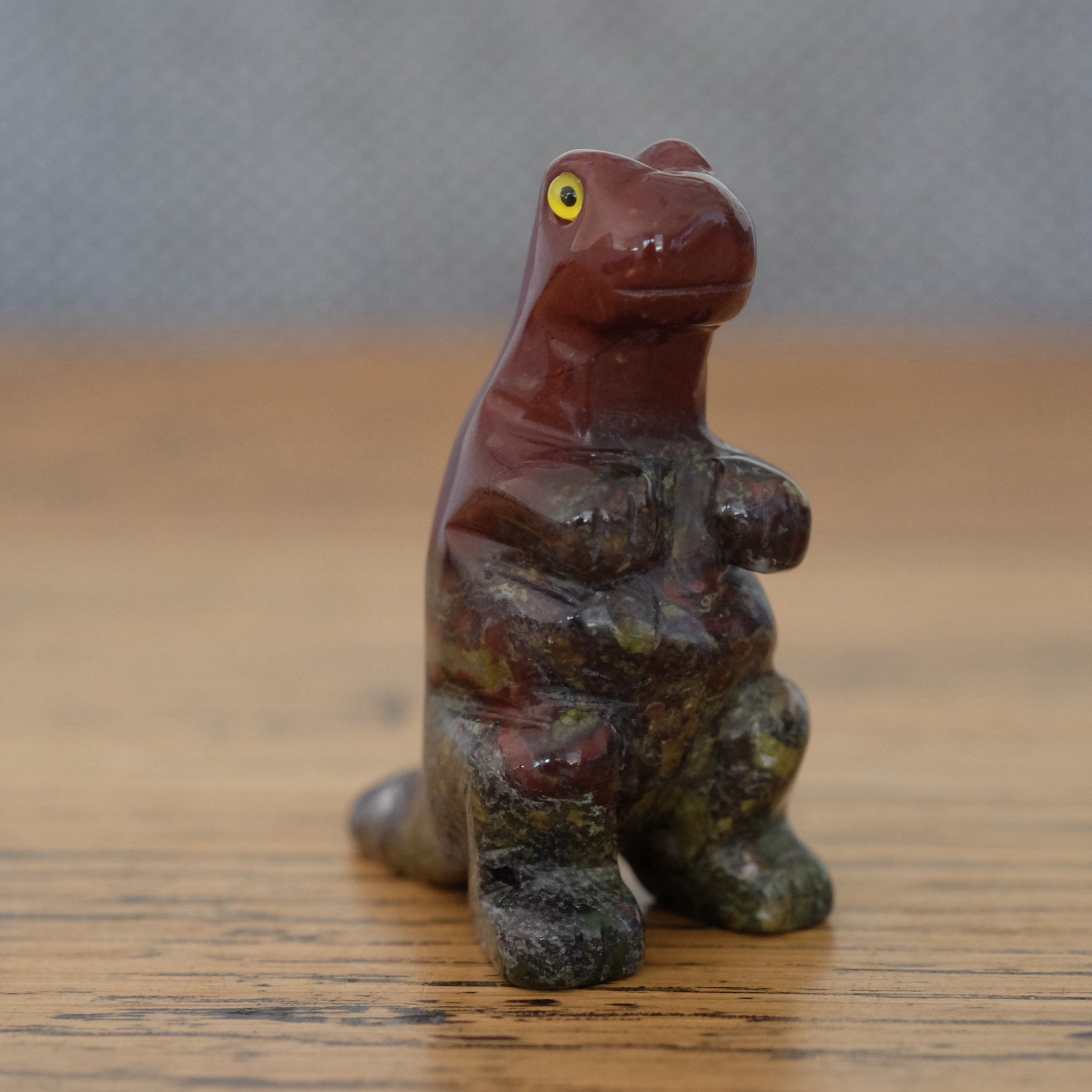 Dragon Blood Jasper Crystal Dinosaurs symbolise strength and inner power. These beautiful hard carved crystal dinosaurs with yellow eyes come in a range of different stones and are perfect as a gift for your loved ones. Dinosaurs are loved by both kids and adults, they are great for courage and feeling protected.