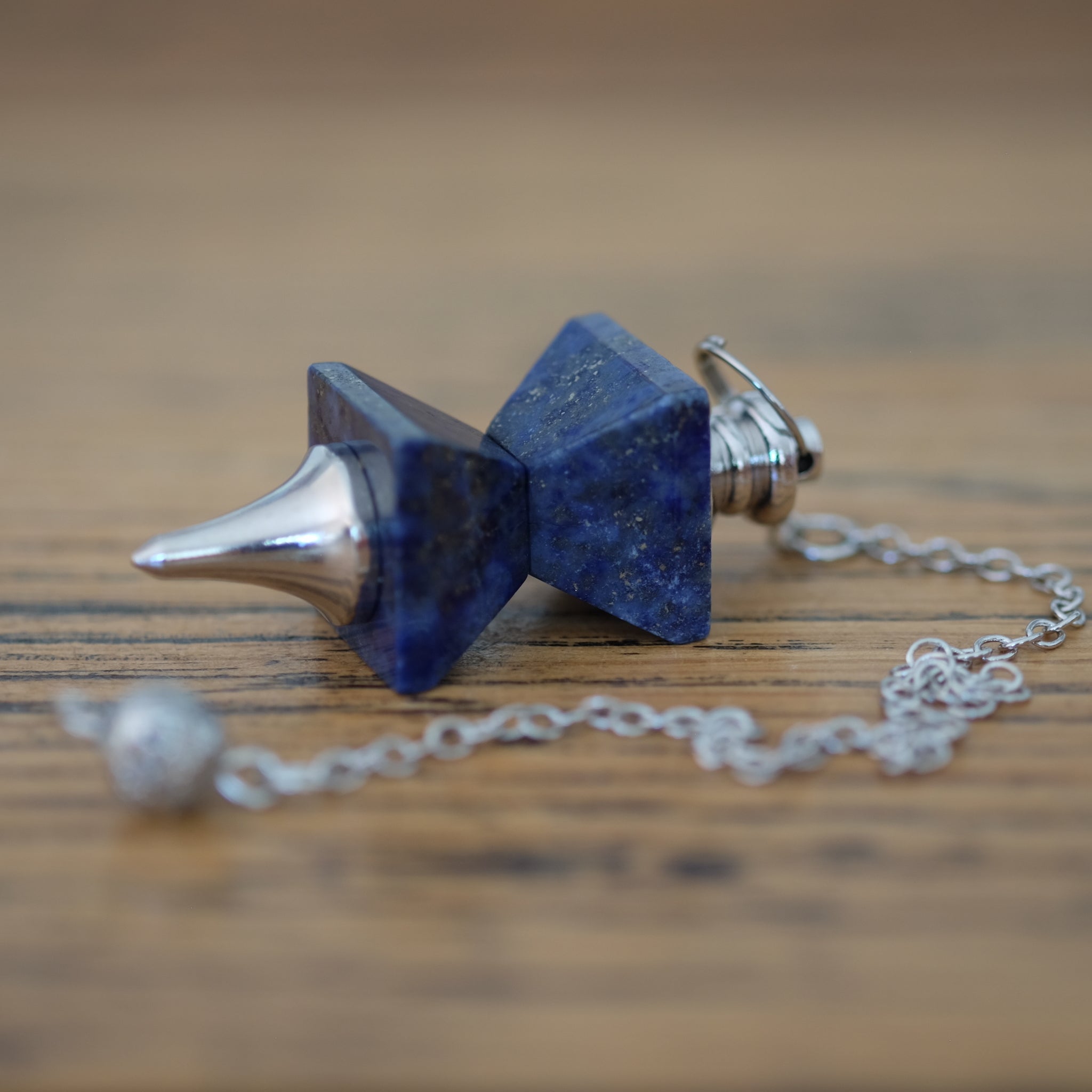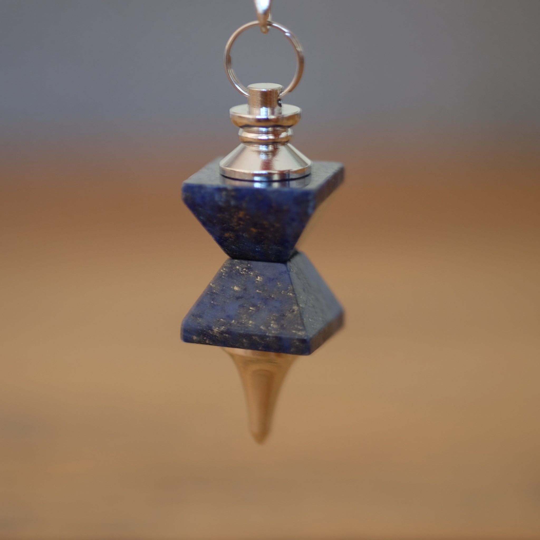 Lapis Lazuli Pyramid Pendulum assists when you need to understand a situation or need direction. Just ask any question and the pendulum will tap into your inner self to provide guidance and help you make your next steps based on your subconscious thoughts. Program your pendulum and set an intention to determine the action for either yes or no answers. Our Pendulums come in a range of different crystals so choose one that best suits you.