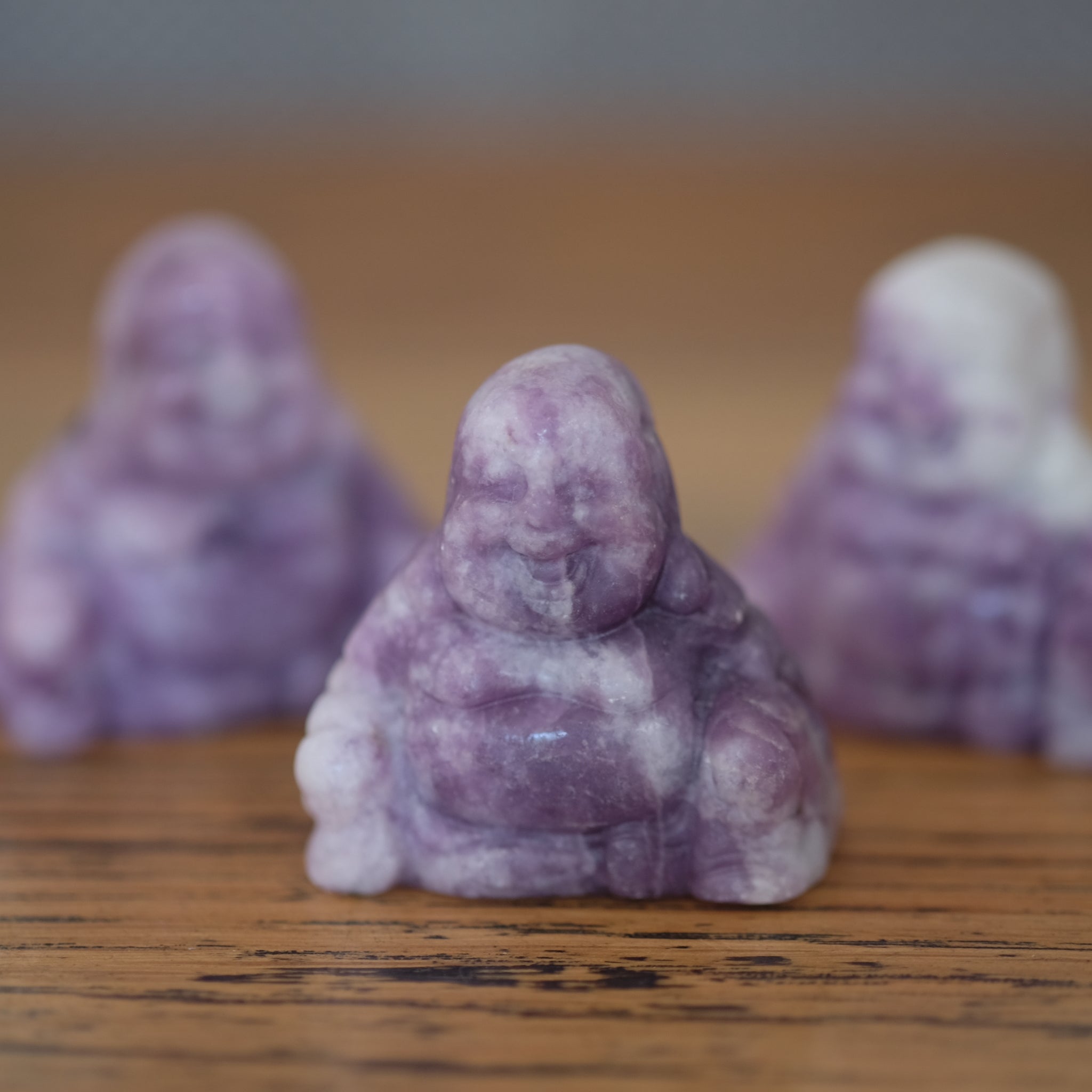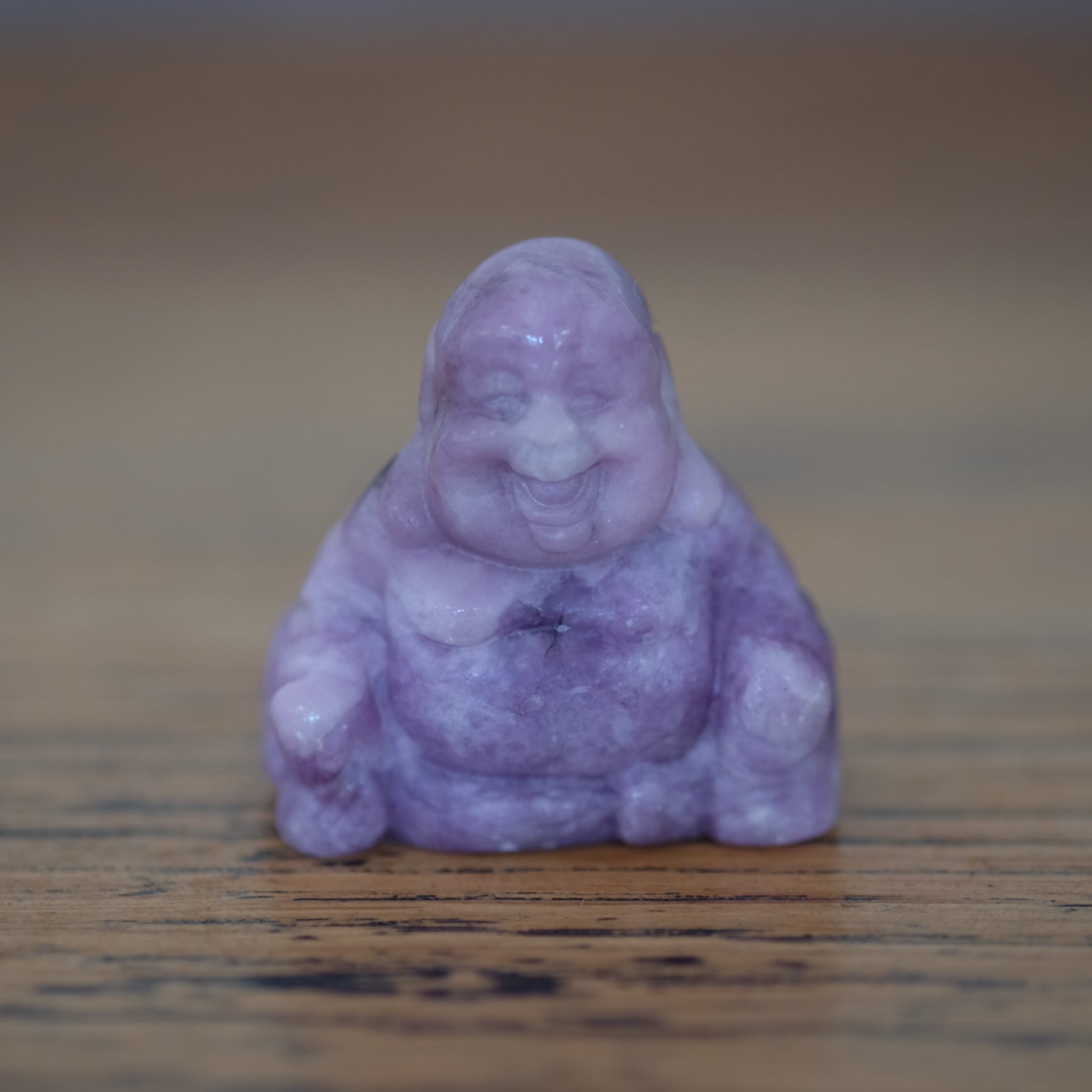 Always smiling & laughing, this gorgeous Lepidolite Laughing Buddha is a symbol of abundance and forgiveness. The cute little Crystal Laughing Buddha is great in dispelling negativity and manifesting wealth, happiness and luck. Laughing Buddhas can also assist in a time of grief and loss bringing positive energy and allowing hope.