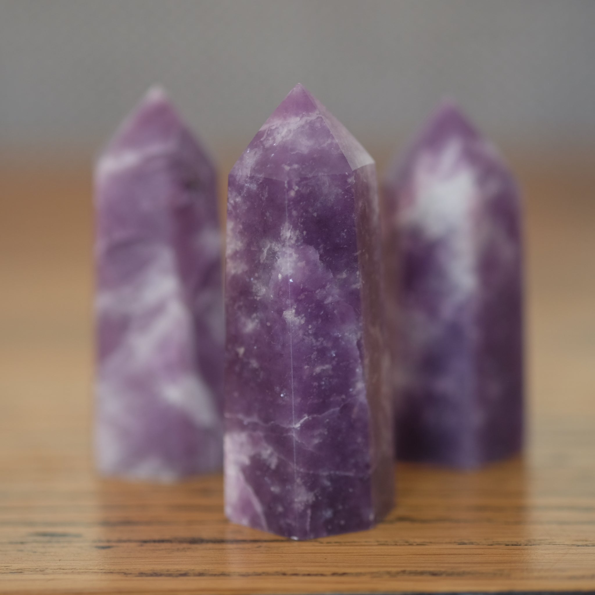 Lepidolite Crystal Towers also known as obelisks or generators are a standing crystal that draws and directs all the energy to a point. Towers can be used to flow energy within the body or used as part of your crystal grid. They can also be great centre piece on display within your home or office.