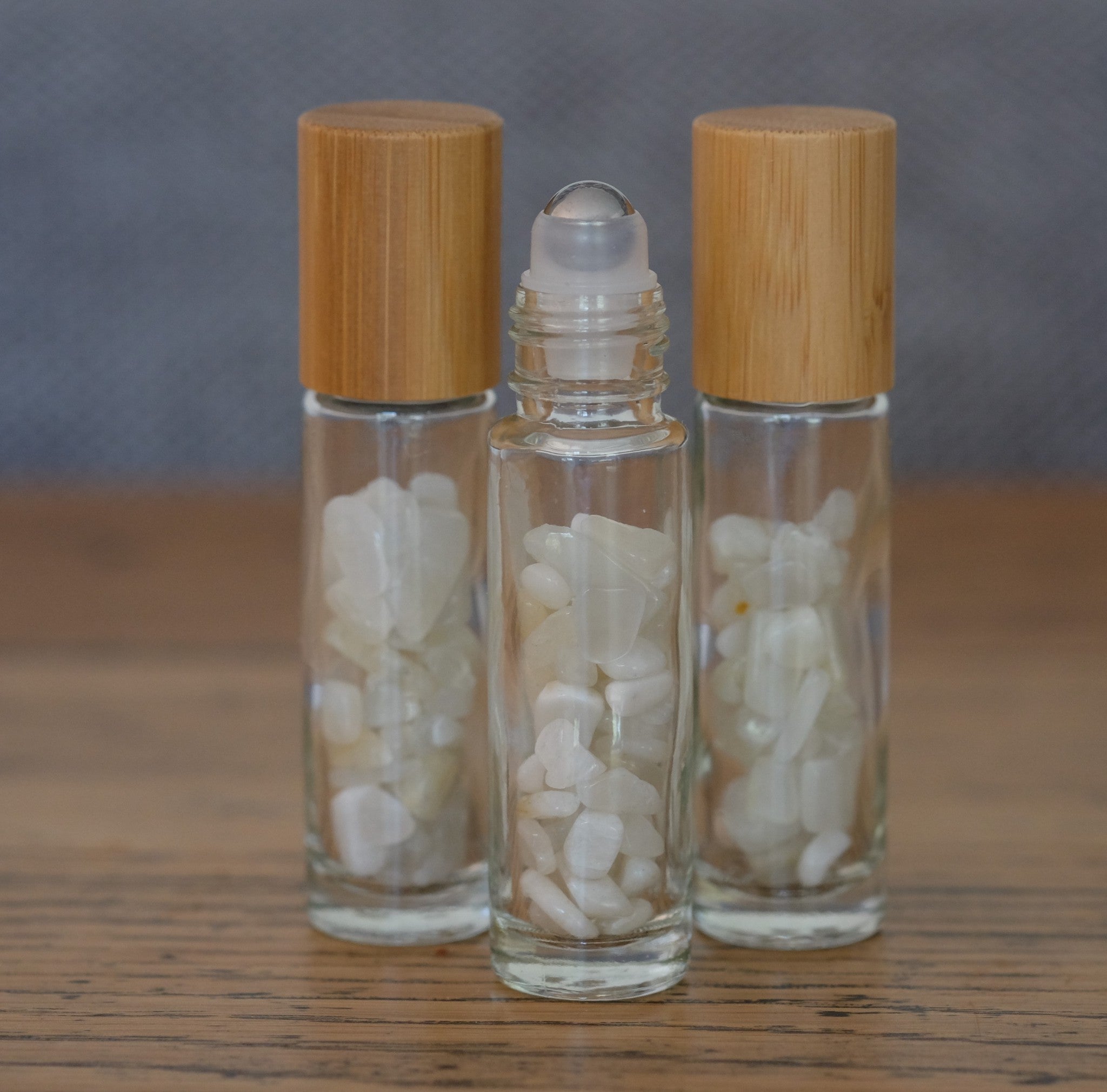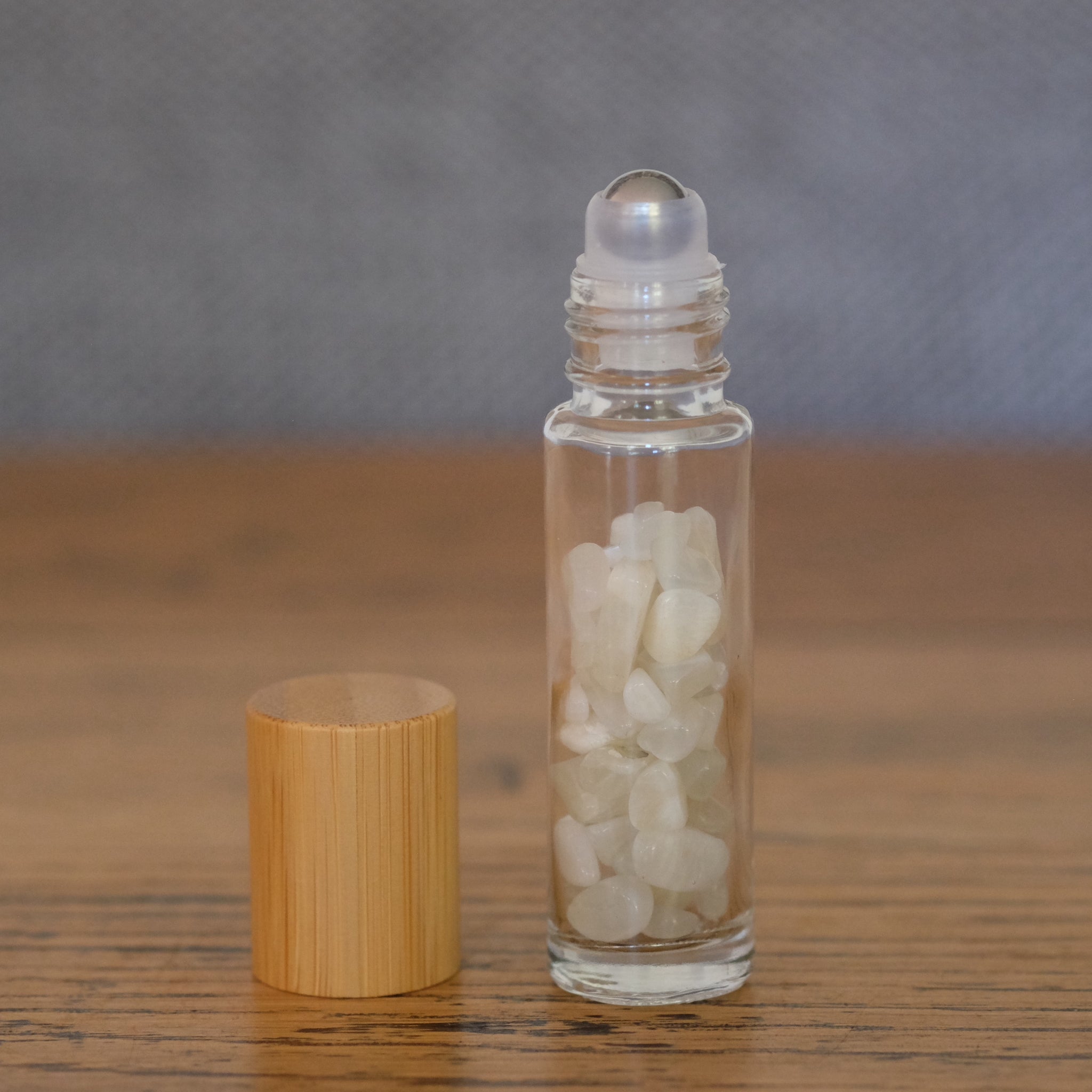Comes with Moonstone crystal chips and a stainless steel roller ball
