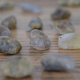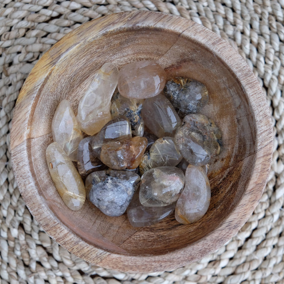 Rutilated Quartz Tumbled Stones are polished stones that have a smooth surface with the rough edges tumbled out. This shape is perfect to carry in your pocket for those times when you need an energy boost or to use in meditation or Reiki.