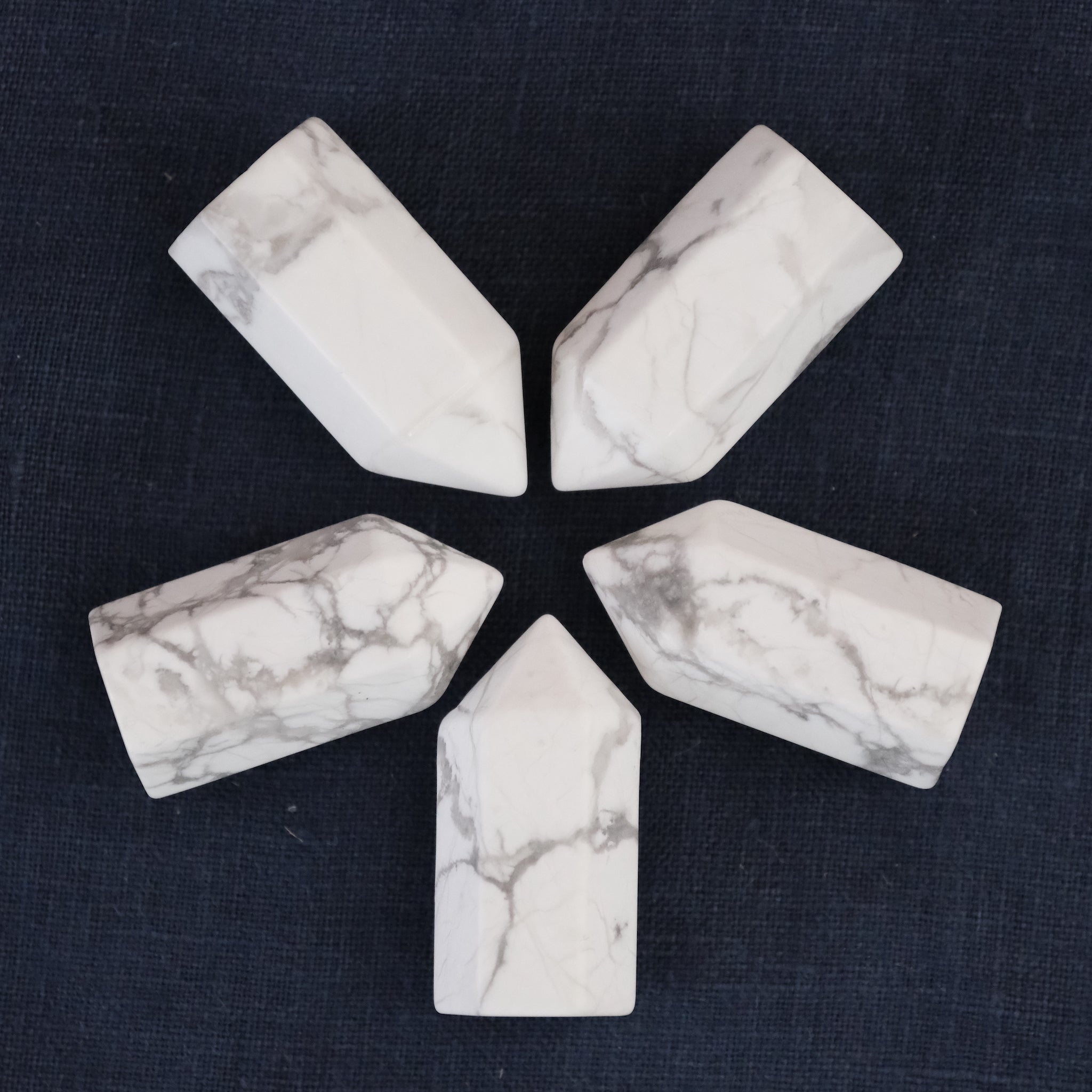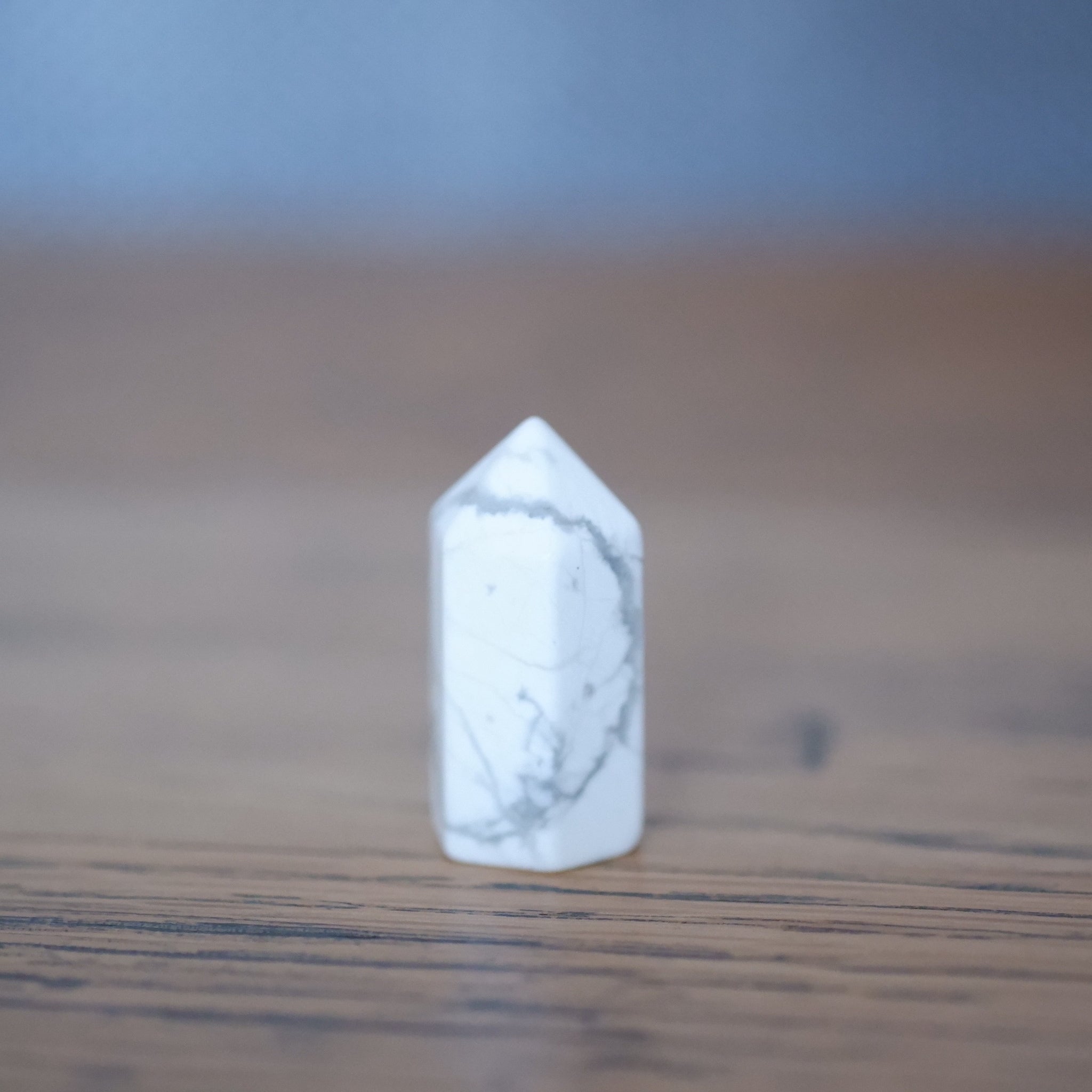 White Howlite Mini Crystal Towers are a standing crystal that draws and directs all the energy to a point. These Mini Towers can be used to flow energy within the body or used as part of your crystal grid. They can also be great centre piece on display within your home or office.
